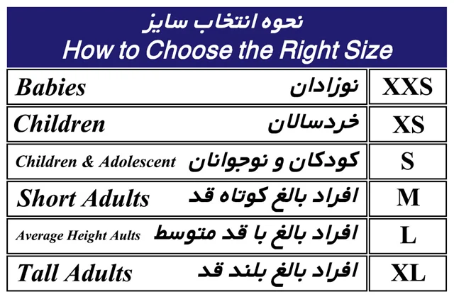 راهنمای انتخاب سایز در تصاویر گالری و پایین صفحه