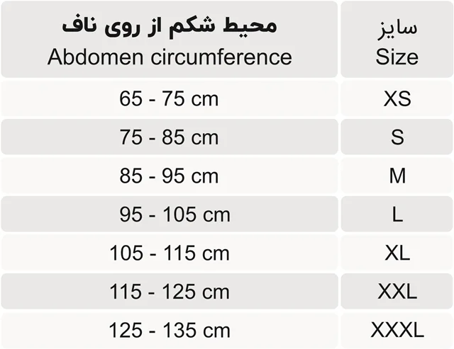 در انتخاب سایز متناسب بر اساس دور کمر بیمار دقت نمایید.
